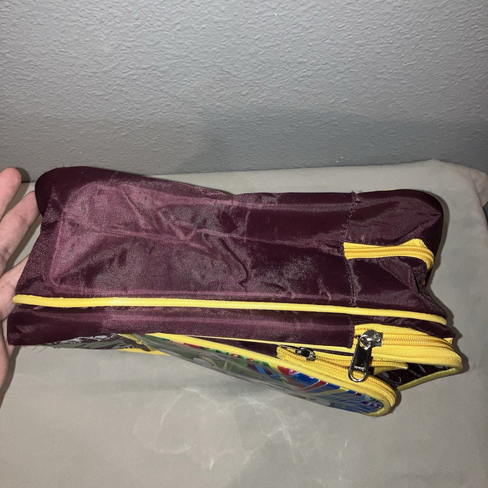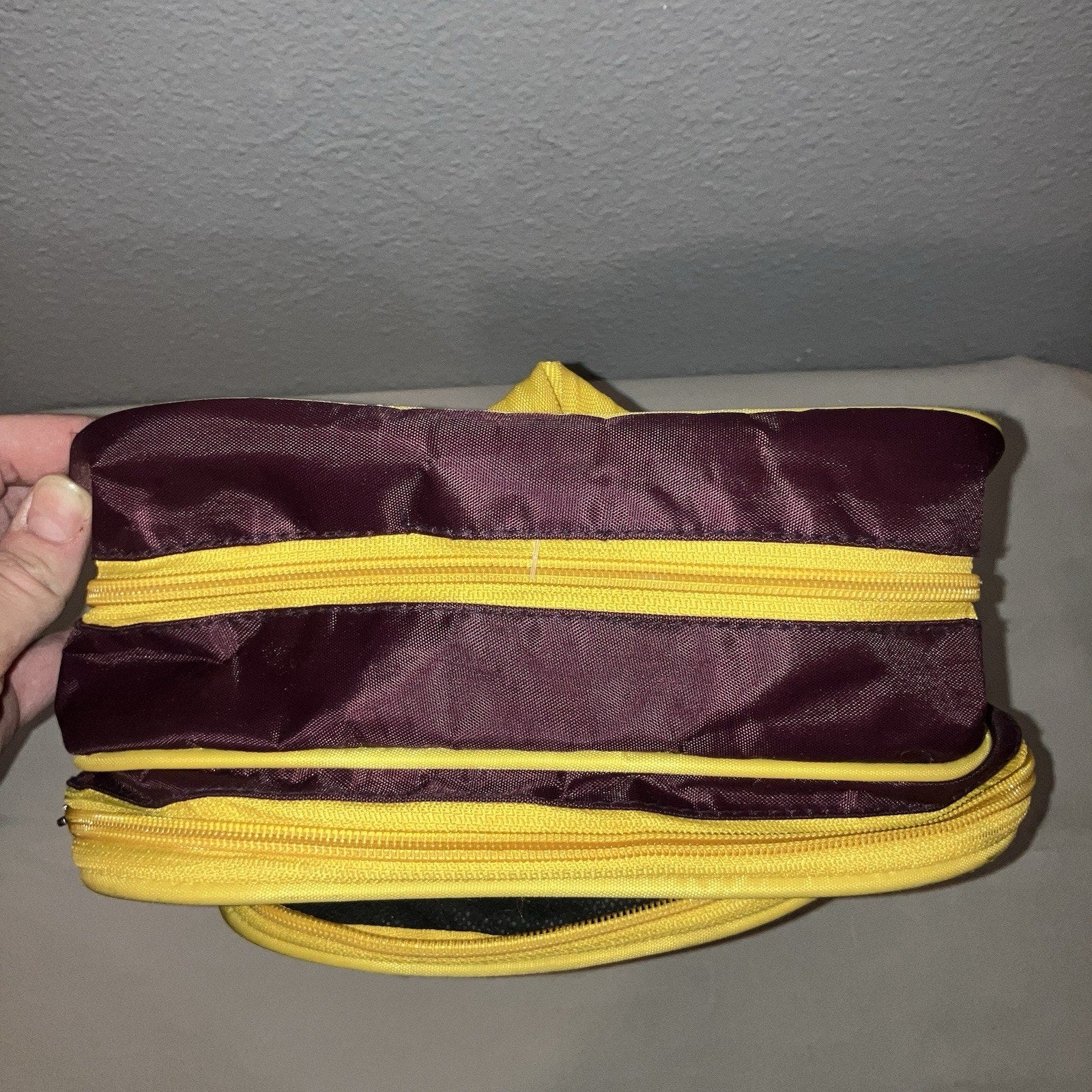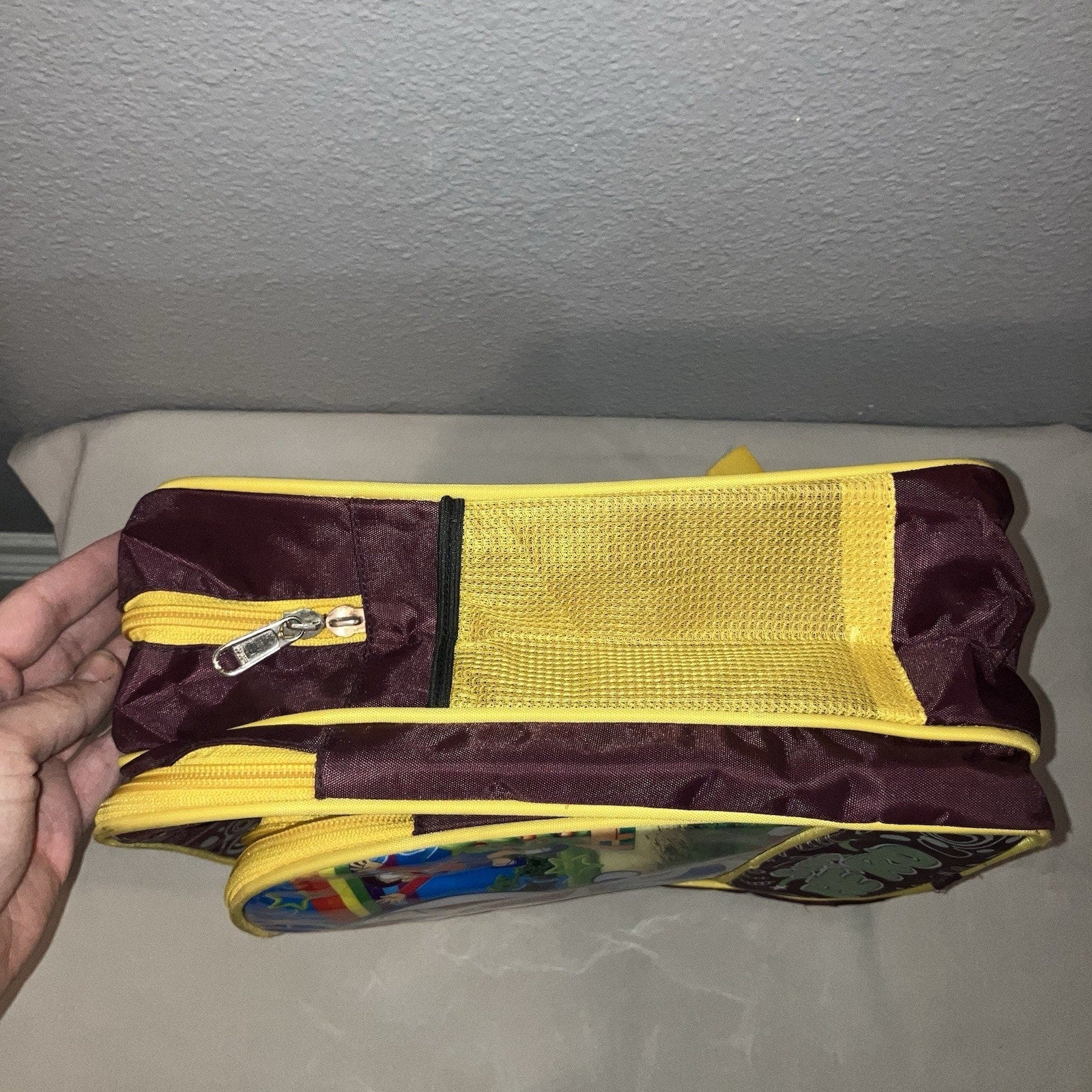 This item shipped secured in place with bubble wrap. You will receive the exact item shown. The front zipper is on there but I can’t get it to zip up. I tried fixing it but it may need to be sewn back in somehow. The 2 bigger pockets work great. Weight: 13.3oz. Size: 12x12x6.