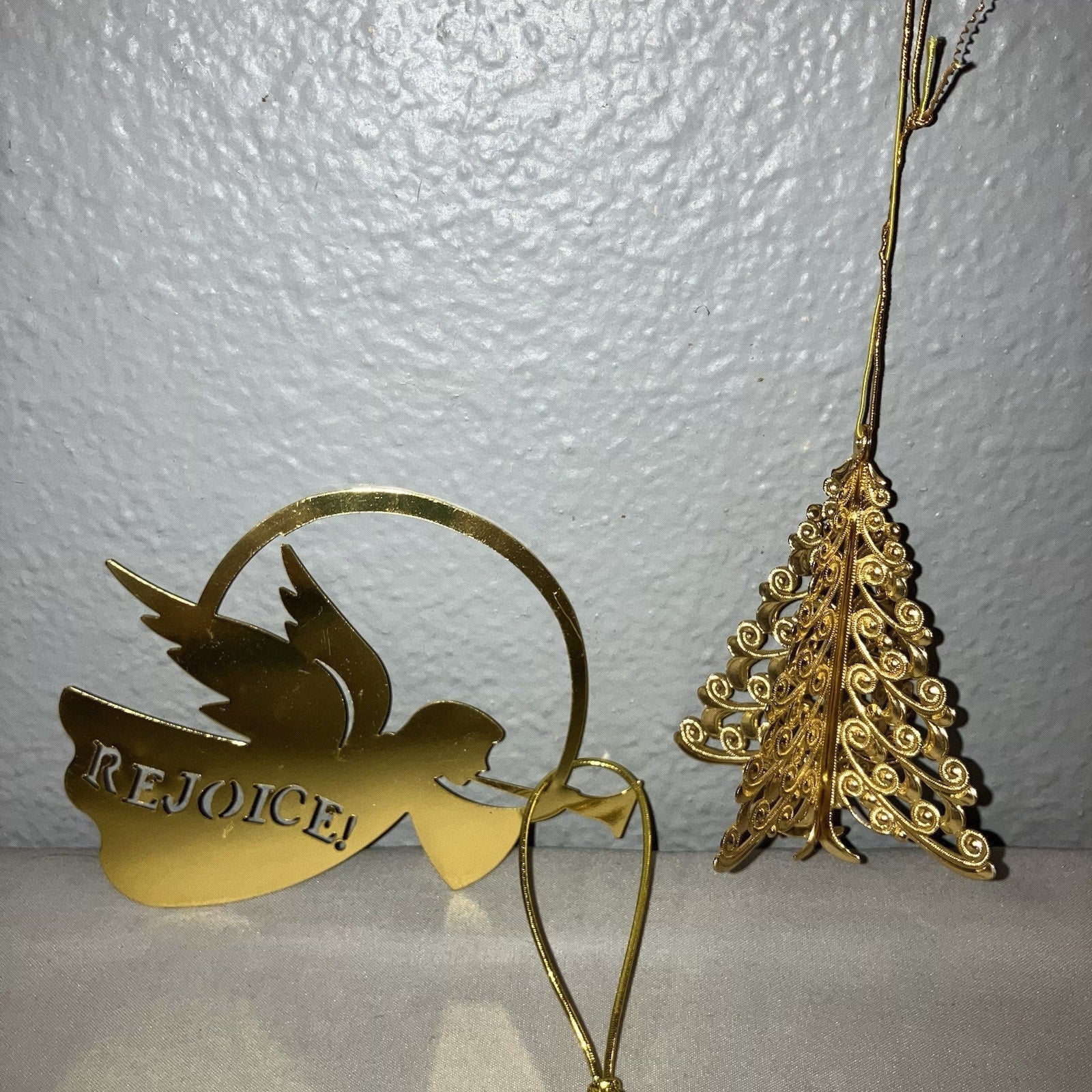 Christmas Ornament Filigree German Xmas Tree Gold Tone / Rejoice Angel Vintage