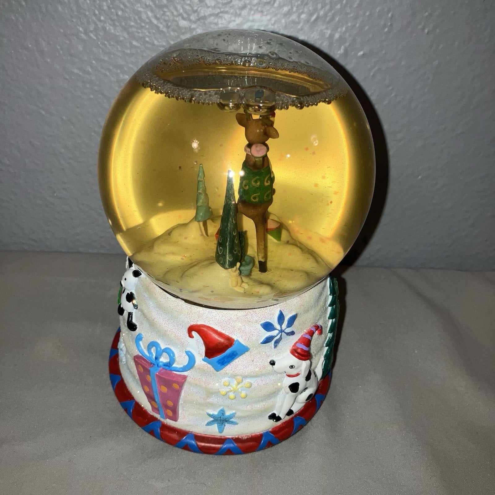Christmas San Francisco Music Box Company Juggling Reindeer Water Snow Globe