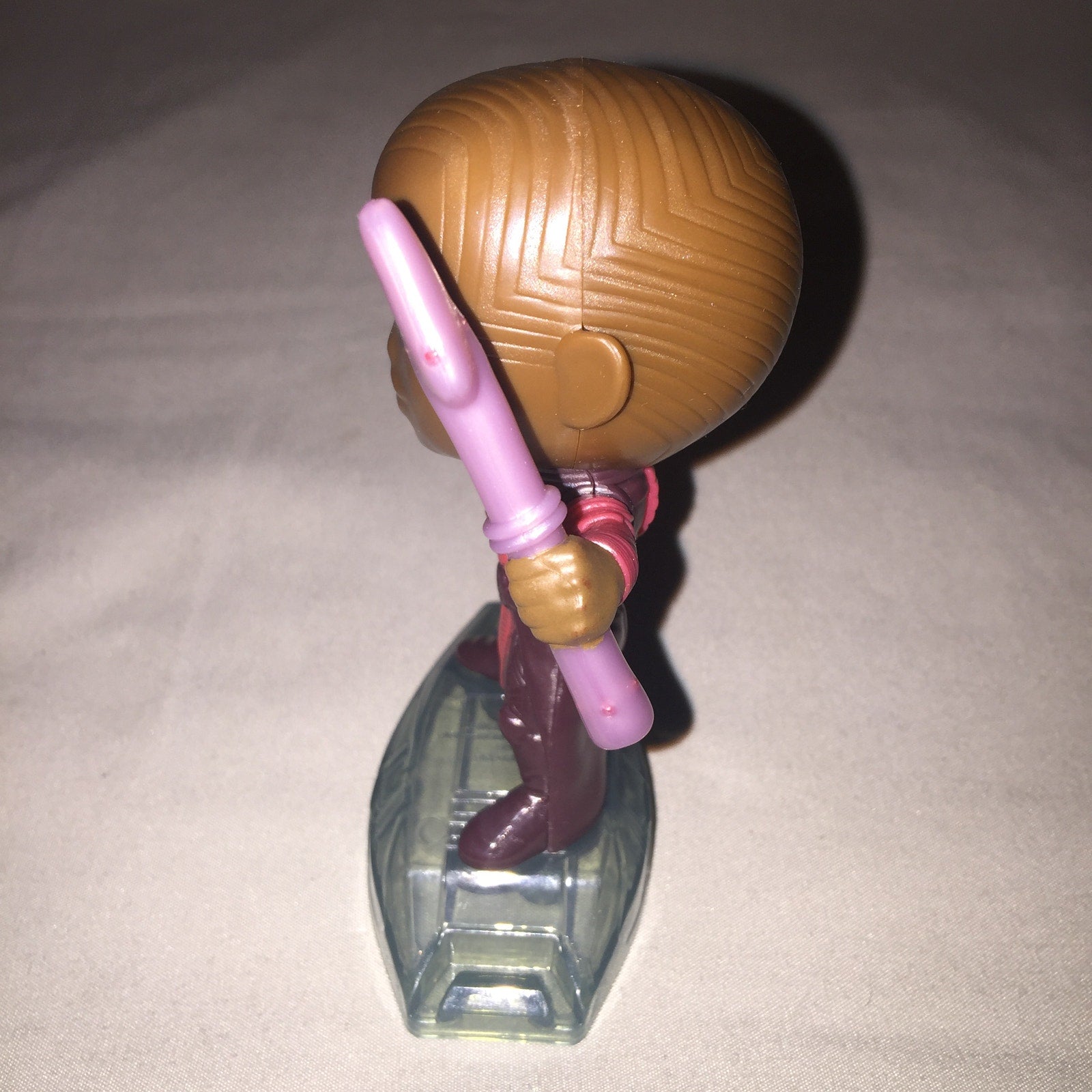 This item shipped secured in place with bubble wrap. Couldn't find a thing wrong looks like it was on a shelf most of its life. Weigh: 1.2oz.