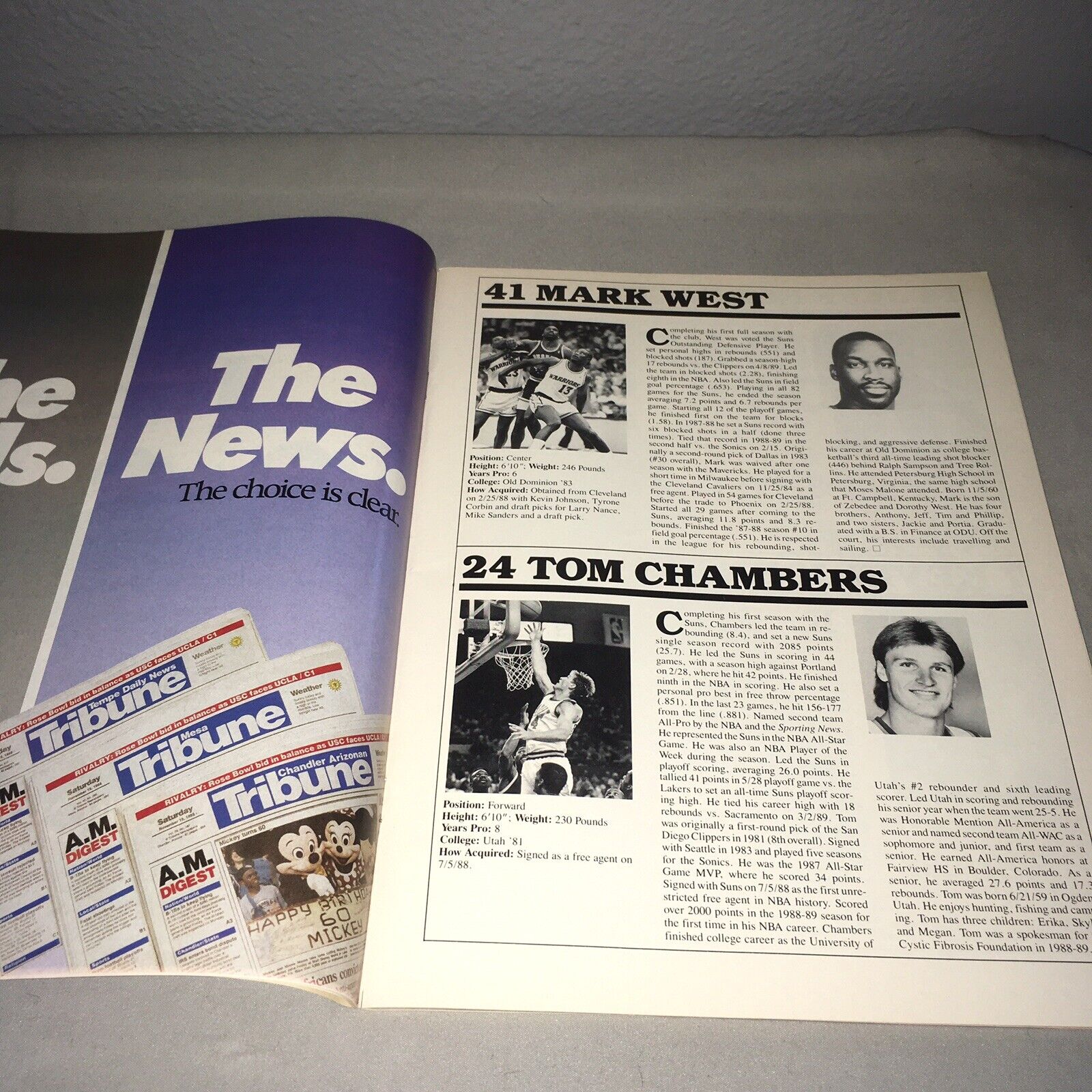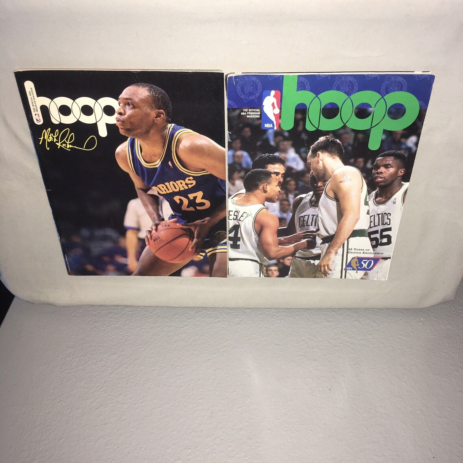 These items shipped secured in place with bubble wrap. They are both from 90s Phoenix Suns games. The Celtics cover is totally off the staples and pretty bent up same with the first couple pages but everything between that is in good condition. The other program is also from a 90s Suns game but in a lot better condition just some minor issues. It’s from the 1989-90 season. Weight: 17.7oz.