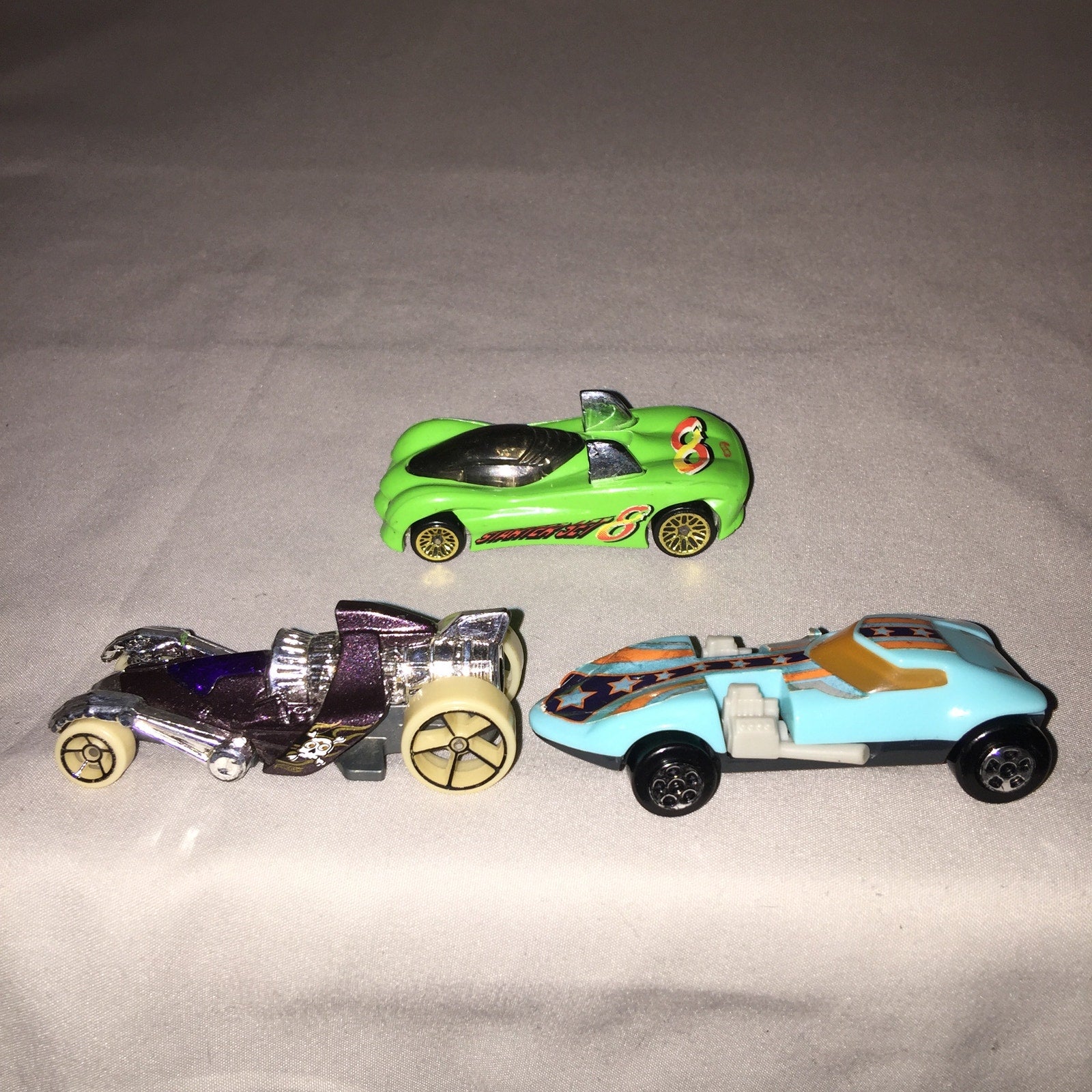 These items shipped secured in place with bubble wrap. They all have some minor issues from use, but they could be a lot worse. The McDonald's toy is the first from that set and it's supposed to have a hoop to bust through but only the car is included in this lot because I don't have the hoop. Weight: 2.9oz.